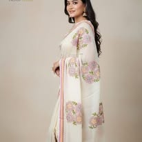 Semi-muslin White Saree with hand designs for Women