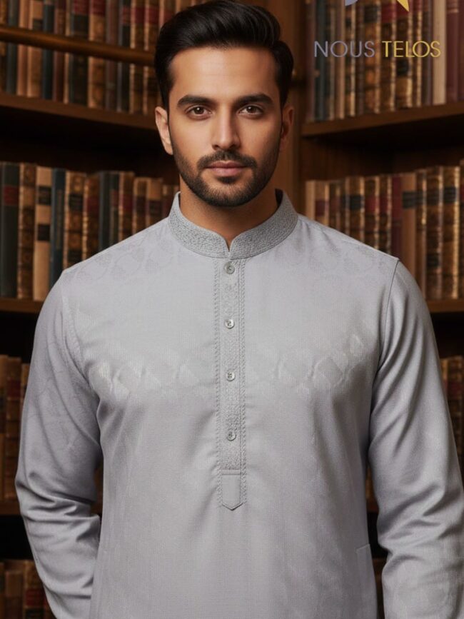 Why Choose the Light Grey Embroidered Silk Panjabi 26