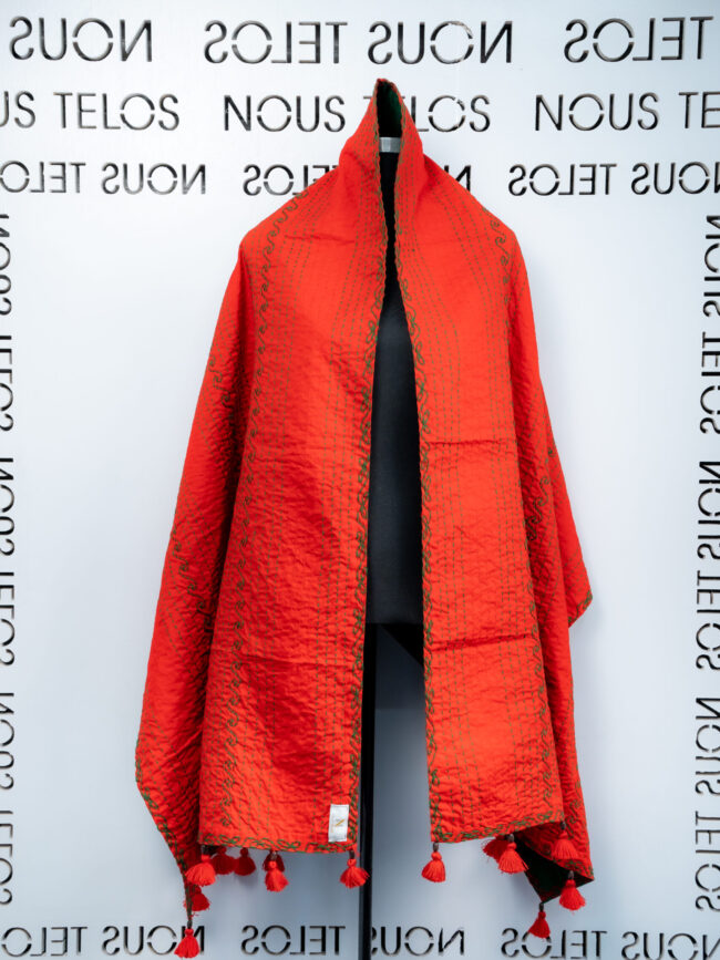 The shawl is decorated with horizontal rows of wave-like embroidery (Kantha-style stitching). This textured, "crinkled" appearance is typical of quilted cotton or silk-blend fabrics, providing both warmth and visual depth. Turn heads with this stunning Vibrant Orange Red Shawl, a bold and beautiful accessory crafted for women who love expressive, confident style. With its radiant color, soft texture, and elegant flow, this shawl adds a warm, lively charm to every outfit—making it perfect for daily fashion, festive occasions, or classy evening looks.✨ Key Features