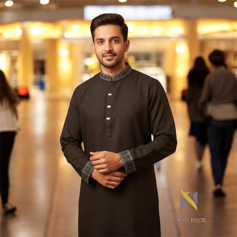 Beautifully crafted embroidered patterns on the neckline and placket add cultural charm and elevate the overall look without being overly flashy.