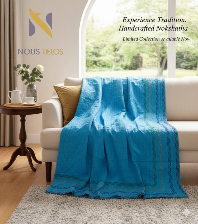 Skilled artisans craft each katha with traditional Nakshi embroidery, showcasing floral motifs, geometric patterns, and cultural storytelling through fine, detailed stitches.