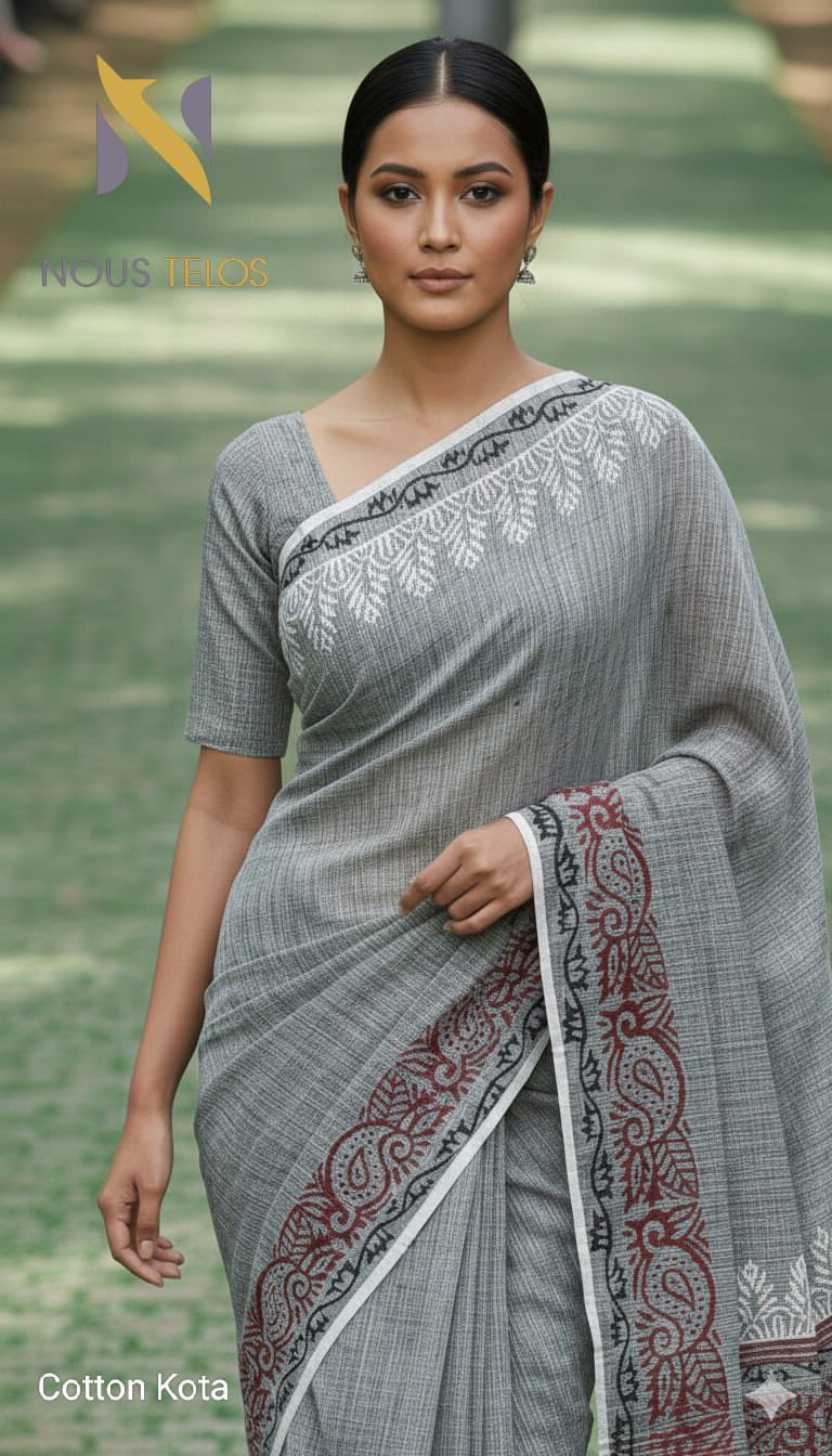 Why Choose the Grey Block Printed Cotton Kota Saree