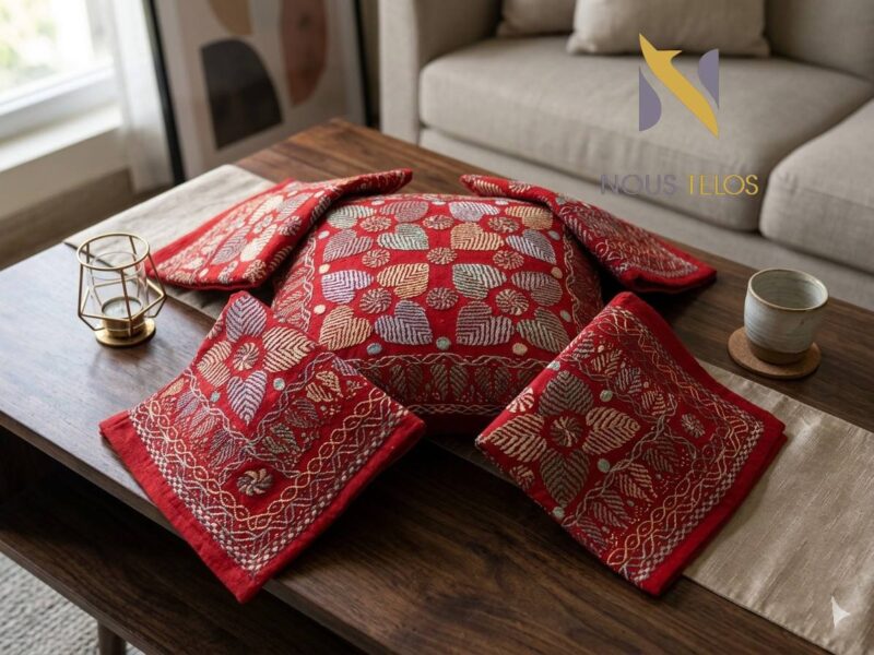 Nakshi Hand Stitch Red Cushion Cover – Traditional Elegance for Your Home Décor
