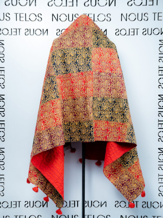 Skilled artisans craft each katha with traditional Nakshi embroidery, showcasing floral motifs, geometric patterns, and cultural storytelling through fine, detailed stitches.